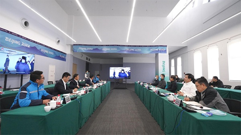 翁祖亮宣講黨的二十大精神 翁祖亮聽取項目情況匯報 翁祖亮在賽道現場了解制冰修冰過程 調研座談現場