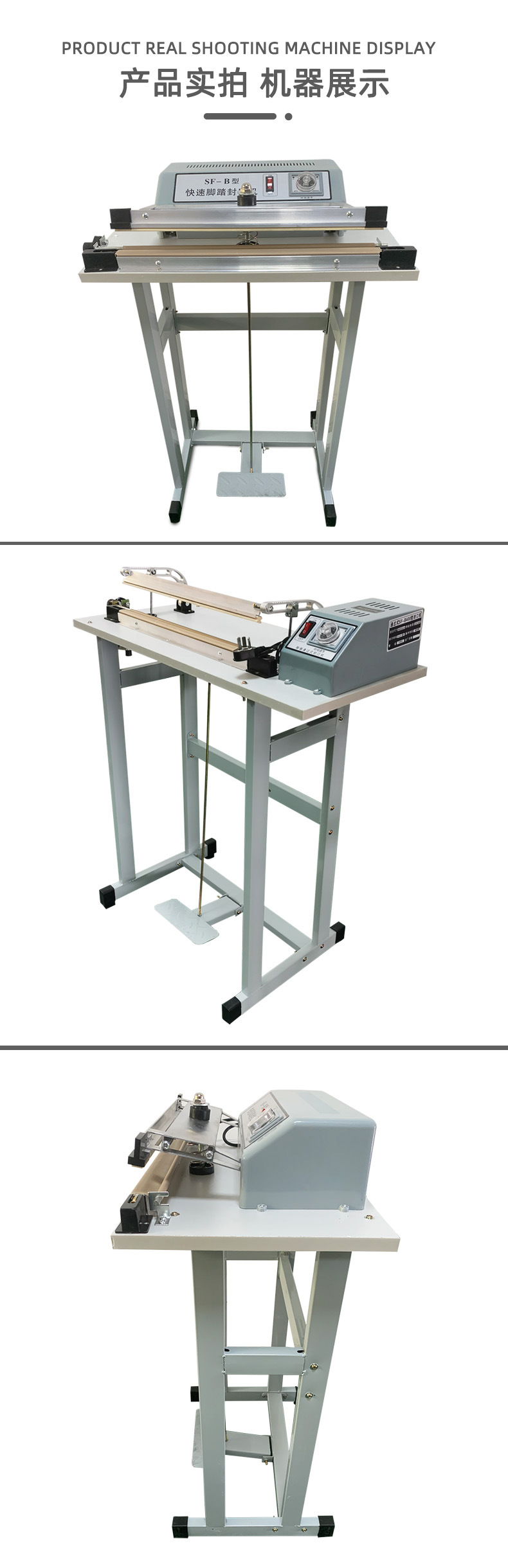 快速腳踏封口機:適用于食品、土特產品、糖果、茶葉、醫藥、五金等行業的小批量包裝,以及家庭、小型商鋪等場所,可對各種塑料薄膜、復合薄膜及鋁塑薄膜進行封口3。
