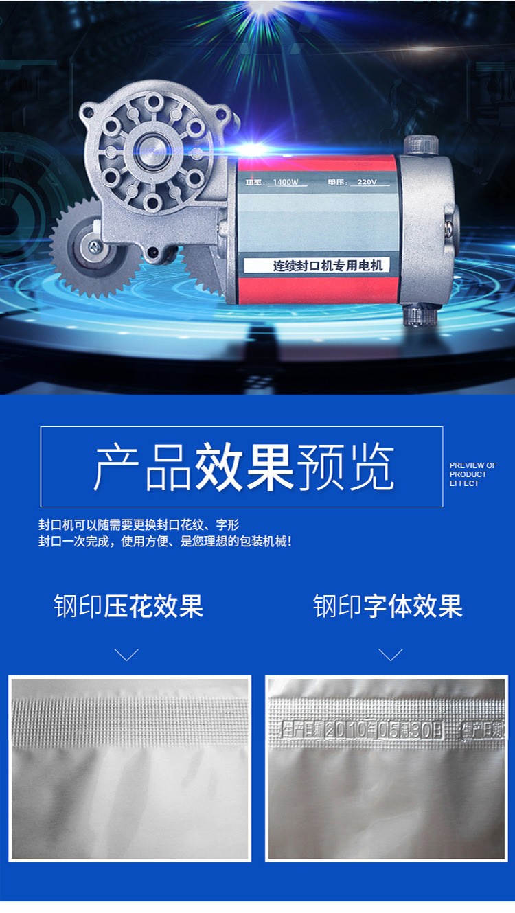封口外觀:如果對(duì)包裝的外觀要求較高,如要求封口平整、美觀,無(wú)明顯褶皺或壓痕,那么需要關(guān)注封口機(jī)的封口模具質(zhì)量和加壓均勻性,選擇能夠?qū)崿F(xiàn)高質(zhì)量封口外觀的設(shè)備。