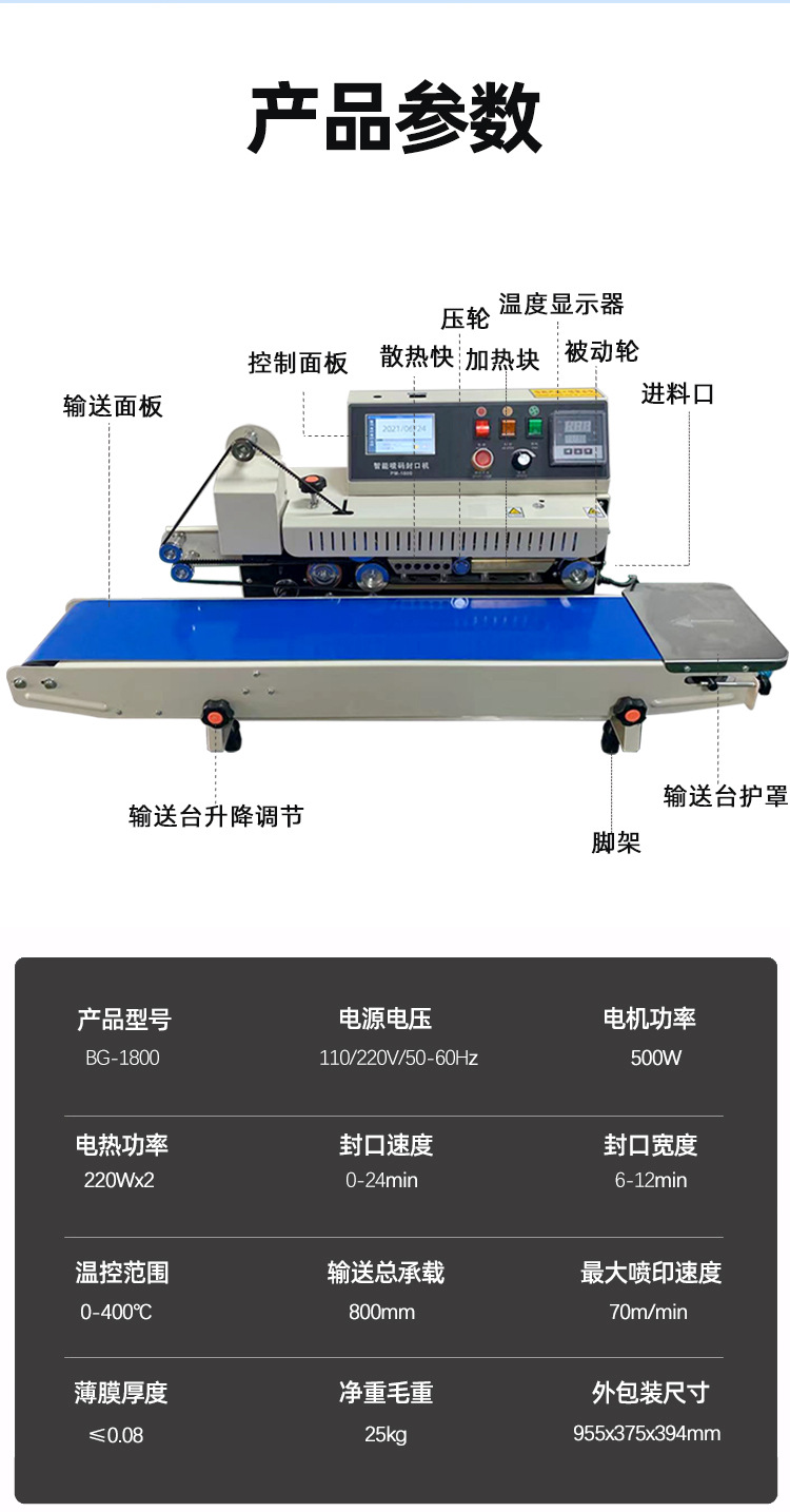 智能噴碼封口機的噴碼質量受噴頭類型、墨水品質、噴碼參數(shù)設置等多個因素影響,具體如下: