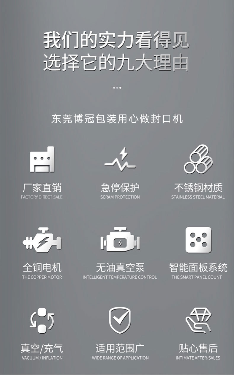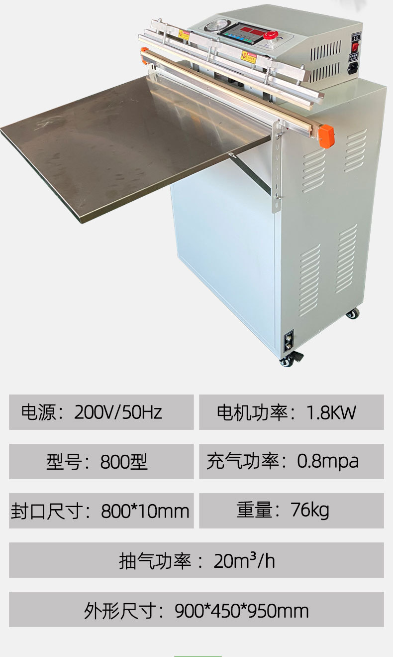 - 外抽式真空包裝機:適合包裝體積較大、形狀不規則或不易放入真空室的產品,如大型機械零件、羽絨制品、床上用品等。也適用于對包裝速度要求較高的場合。