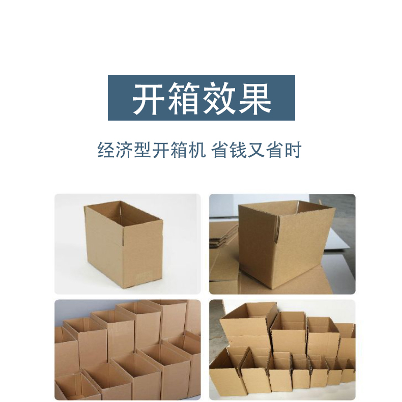 - 自動(dòng)開(kāi)箱:設(shè)備啟動(dòng)后,開(kāi)箱機(jī)構(gòu)開(kāi)始工作。吸盤(pán)吸附紙箱坯料的側(cè)面,通過(guò)機(jī)械動(dòng)作將其拉開(kāi)成紙箱形狀,撐箱臂在開(kāi)箱過(guò)程中起到支撐和定型的作用,確保紙箱能夠順利打開(kāi)并保持形狀。整個(gè)開(kāi)箱過(guò)程由設(shè)備自動(dòng)完成,無(wú)需人工干預(yù)。