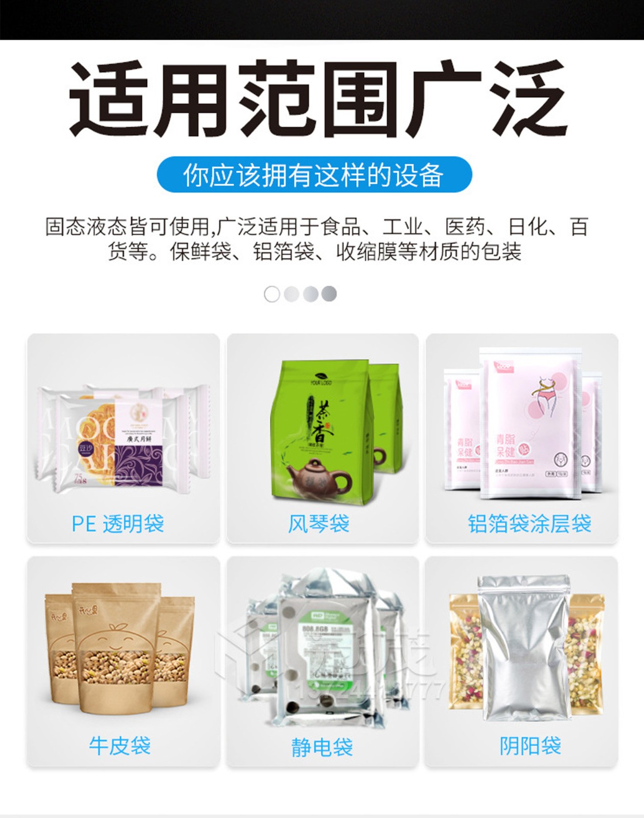 適用范圍廣:適用于 PE、PP、PVC、鋁箔袋、復合袋等多種塑料和復合材料的包裝袋,可廣泛應用于食品、醫藥、化工、電子、五金等多個行業。