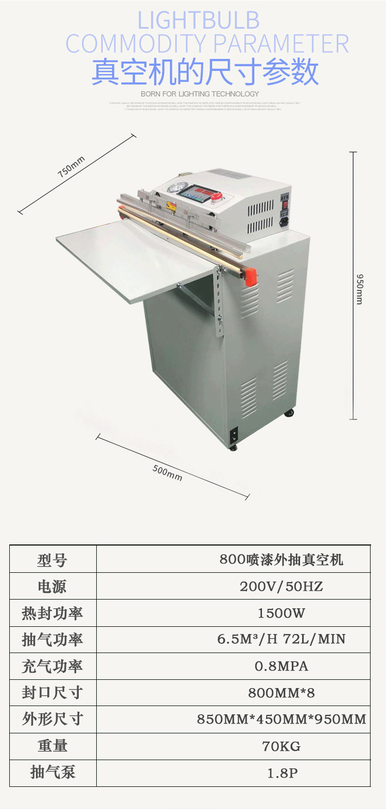 電動外抽真空包裝封口機封口采用氣壓式,壓力大,封口干凈、平整、牢固,徹底改變傳統包裝封口不牢的現象,可有效防止包裝內容物泄漏