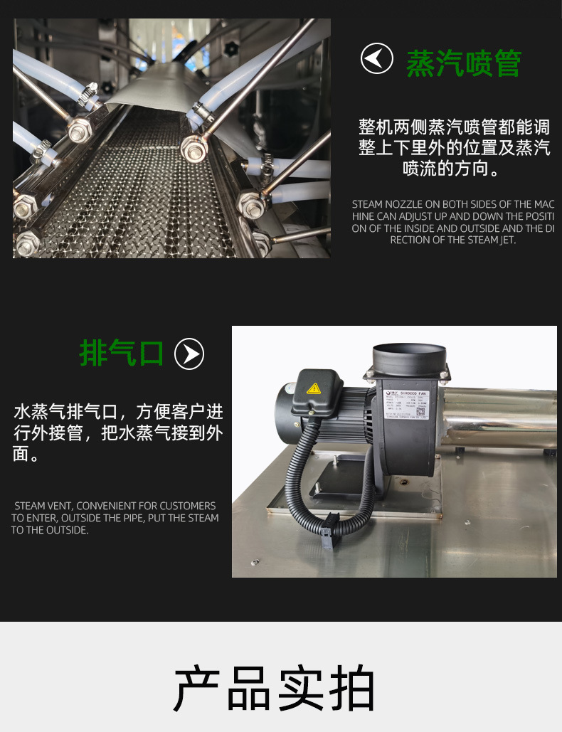 - 收縮均勻:蒸汽在收縮室內(nèi)分布均勻,可確保包裝膜在產(chǎn)品各個(gè)部位的收縮程度一致,不會出現(xiàn)局部收縮不緊或過度收縮的情況,使包裝后的產(chǎn)品外觀更加整齊、美觀。