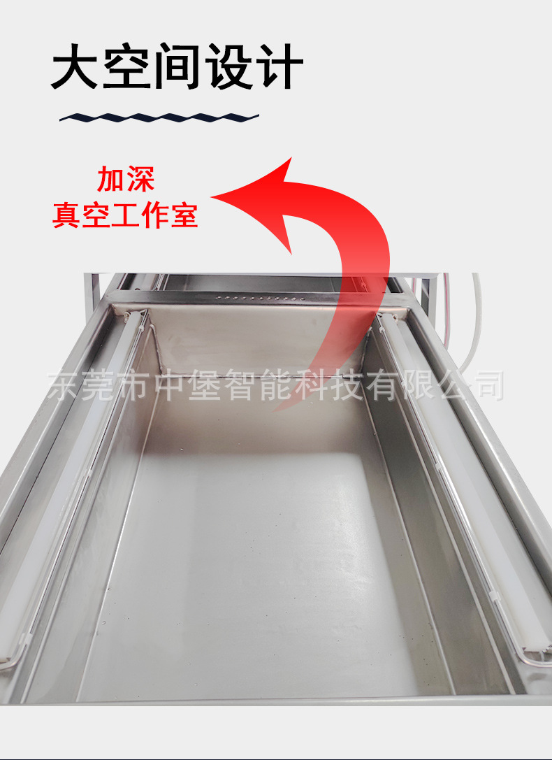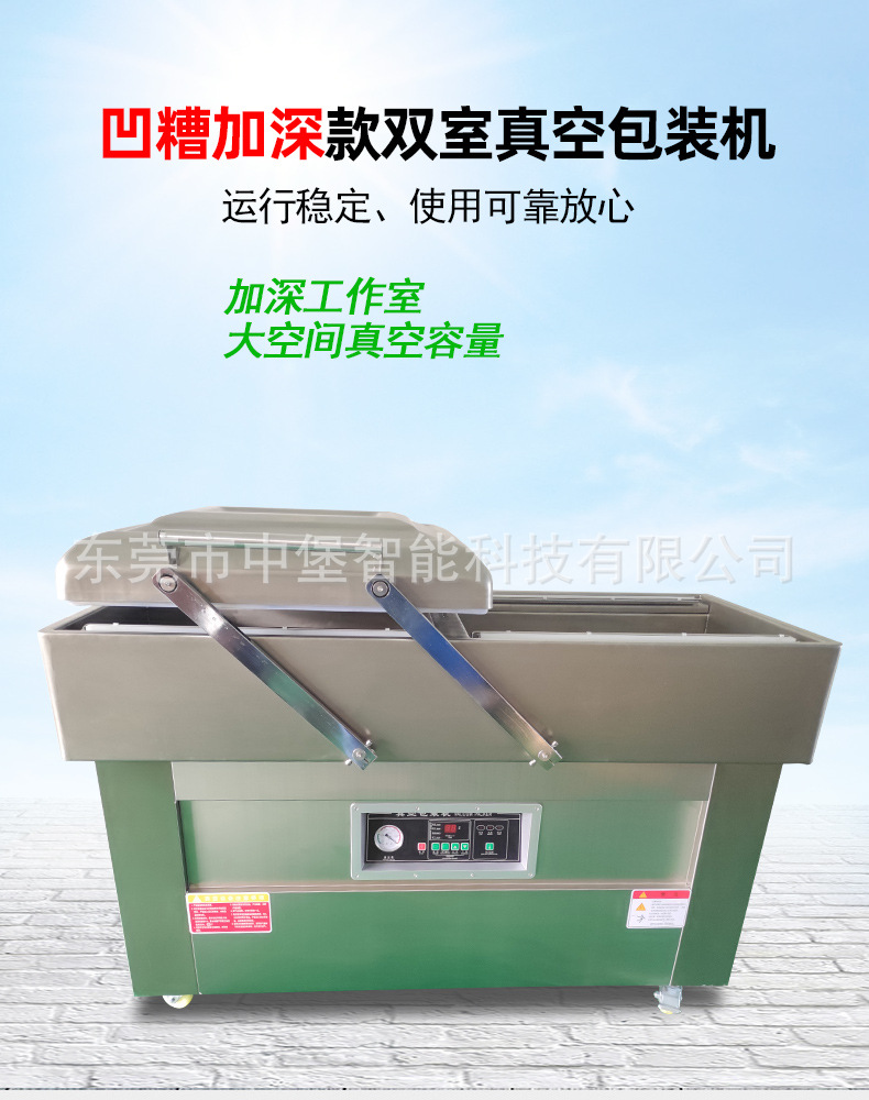 凹糟加深款雙室真空包裝機是在普通雙室真空包裝機的基礎上,對真空室的凹槽進行加深設計的一種包裝設備,具有諸多特點和優勢,以下為你詳細介紹: