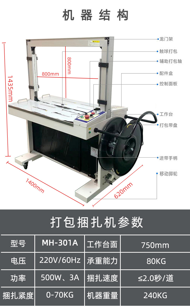 • 打包機構:主要由打包帶供給裝置、收緊裝置、焊接或卡扣裝置等構成。打包帶供給裝置負責提供打包所需的打包帶,收緊裝置可將打包帶收緊到合適的緊度,焊接或卡扣裝置則用于完成打包帶兩端的固定連接。