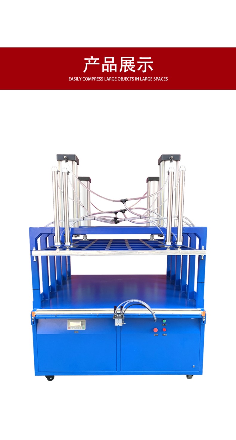 • 壓縮操作(如果有此功能):對于具備壓縮功能的機器,在抽完真空后,壓縮裝置開始工作。它通過機械力對真空袋內(nèi)的物品進行擠壓,使物品的體積進一步減小。這個過程通常是通過上下或左右的壓板來實現(xiàn)的,壓板的壓力可以根據(jù)物品的特性和期望的壓縮程度進行調(diào)整。