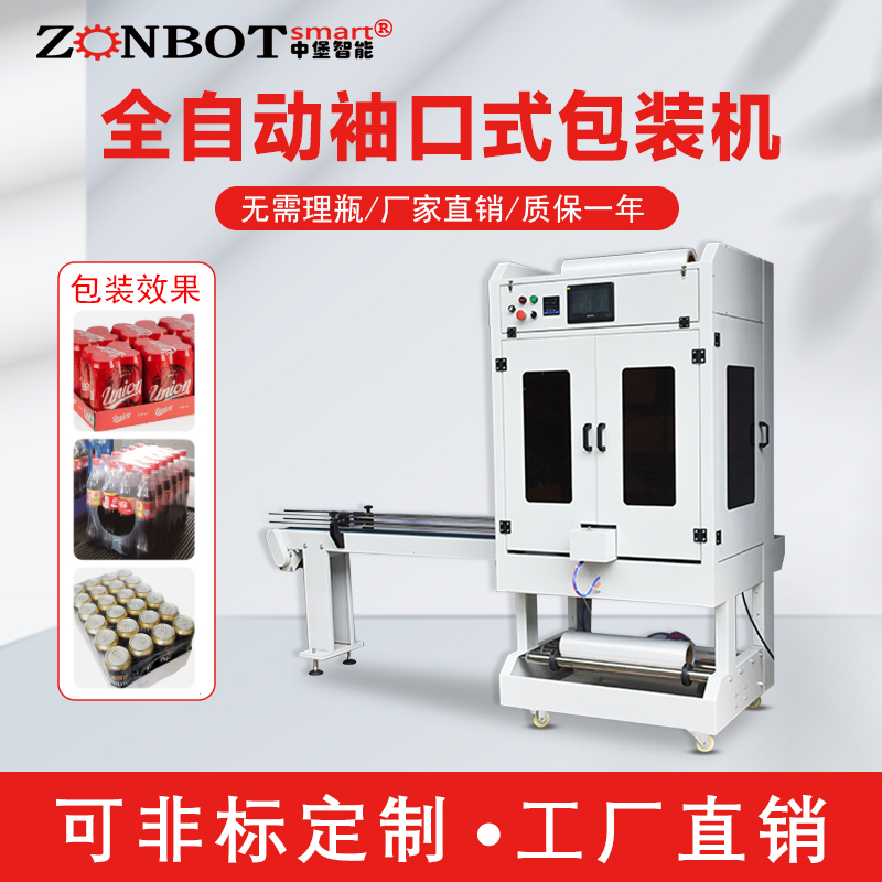高度自動化流程:全自動袖口式包裝機能夠自動完成從產品輸送、包裝材料成型、產品套入包裝材料,到封口、切斷等一整套包裝流程。例如,在食品包裝生產線中,產品通過輸送帶自動進入包裝機,包裝機自動將塑料薄膜制成合適的包裝形狀,把產品包裹進去,然后精準地封口和切斷包裝,整個過程無需人工干預,極大地提高了生產效率。