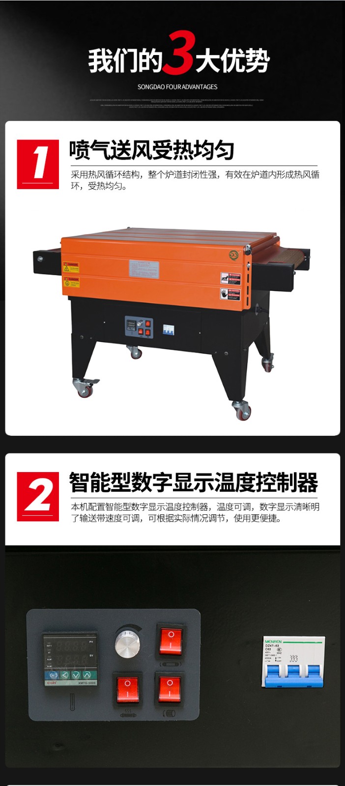 - 包裝效果好:由于噴氣系統能夠使熱空氣均勻地分布在包裝薄膜上,所以可以保證薄膜收縮得非常均勻、緊密。這樣包裝后的產品外觀整潔、美觀,能夠有效提升產品的整體形象。而且緊密的包裝還可以增強產品的穩定性,防止產品在運輸和儲存過程中發生移位或損壞。