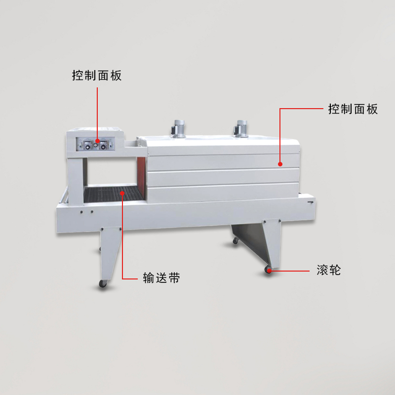 - 輸送系統:主要包括輸送帶和驅動電機。輸送帶用于承載和輸送被包裝的產品,其材質通常是耐高溫的橡膠或特殊的合成材料,以適應加熱區域的高溫環境。驅動電機能夠精確控制輸送帶的速度,從而調整產品在加熱區域的停留時間,以滿足不同產品和薄膜的收縮要求。