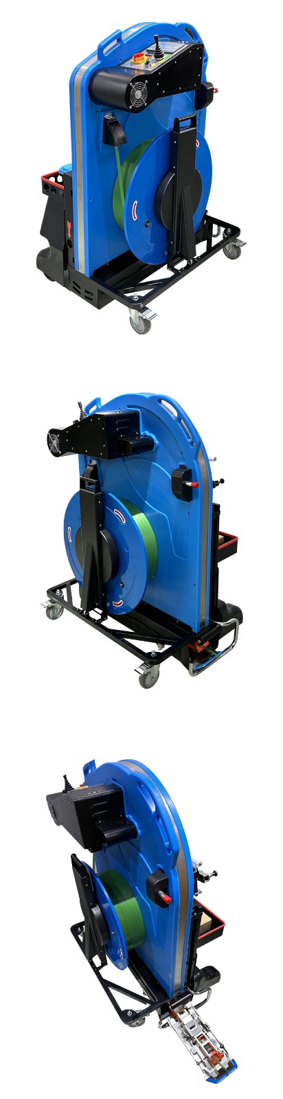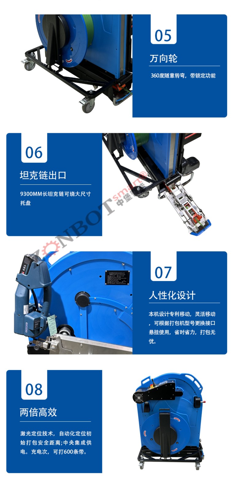 • 導(dǎo)向系統(tǒng):由多個導(dǎo)向輪和導(dǎo)軌組成。導(dǎo)向輪一般是可以靈活轉(zhuǎn)動的滾輪,它們可以根據(jù)打包帶的寬度和穿帶路徑進(jìn)行調(diào)整。導(dǎo)軌則是為打包帶提供了一個固定的通道,確保打包帶沿著預(yù)定的路線行進(jìn)。比如,當(dāng)打包帶需要轉(zhuǎn)彎時,導(dǎo)向輪會將其引導(dǎo)到合適的軌道上。