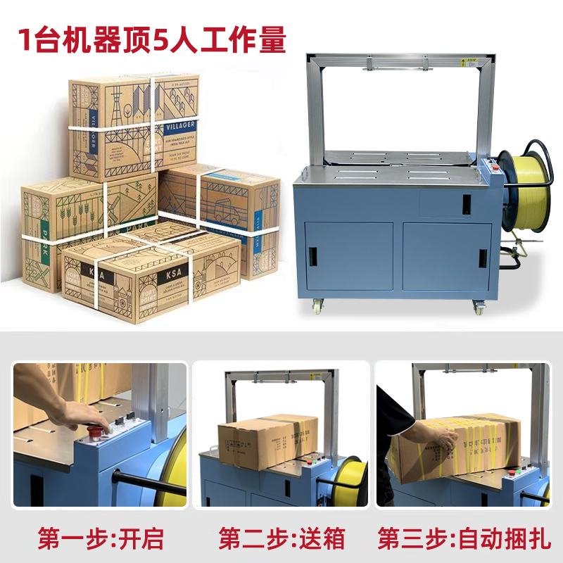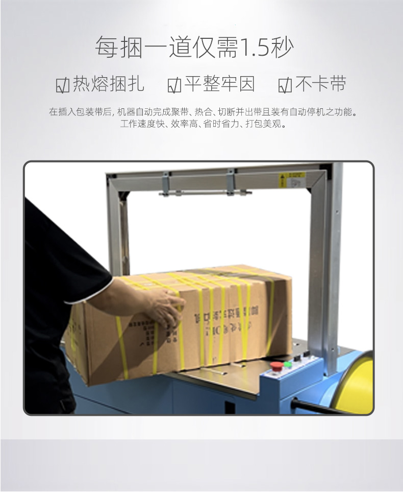 - 自動上帶:機器啟動后,會自動從打包帶卷中抽出打包帶,并將其傳送到預定的位置,準備進行打包。這個過程無需人工干預,大大提高了工作效率。