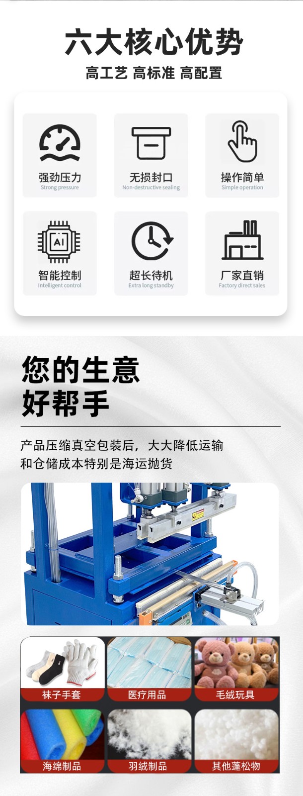 縮小包裝空間:能極大地縮小蓬松物品的包裝體積,降低儲藏運輸成本。