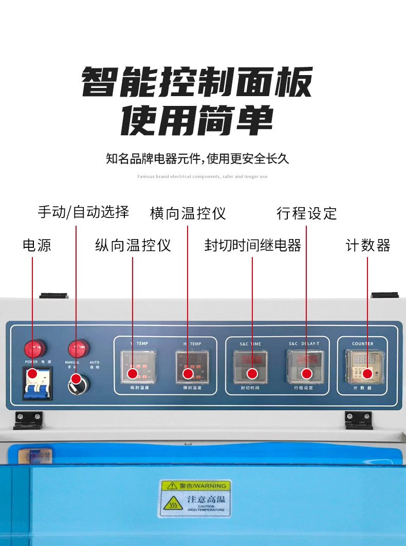 - 核心部件(如封切刀、輸送帶)均為模塊化設(shè)計(jì),拆卸更換方便,日常維護(hù)僅需清理廢膜、檢查加熱管即可。