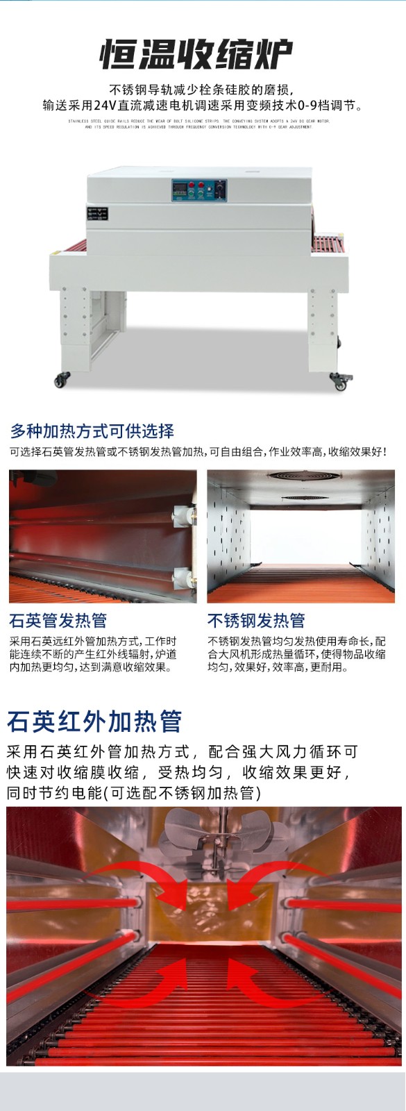 - 收縮爐采用 “不銹鋼保溫爐體 + 熱風(fēng)循環(huán)設(shè)計(jì)”,熱量流失少,比傳統(tǒng)開(kāi)放式加熱節(jié)能 20%-30%;