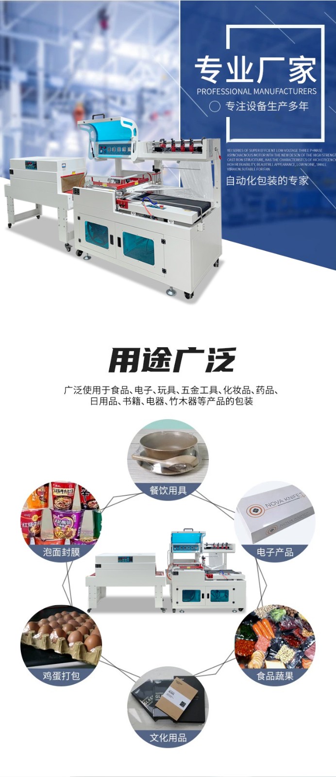 全自動(dòng) L 型封切熱收縮包裝機(jī)是一款集 “封切套膜” 與 “熱收縮定型” 于一體的自動(dòng)化包裝設(shè)備,因封切機(jī)構(gòu)呈 “L” 形而得名,廣泛應(yīng)用于食品、醫(yī)藥、電子、日化等行業(yè),核心優(yōu)勢(shì)是包裝效率高、密封性好、外觀規(guī)整,能快速實(shí)現(xiàn)產(chǎn)品的單件或集合包裝,尤其適配規(guī)則形狀(如長(zhǎng)方體、圓柱體)及中小型尺寸產(chǎn)品。下面從核心工作原理、關(guān)鍵結(jié)構(gòu)組成、核心優(yōu)勢(shì)、適用場(chǎng)景、選型與操作注意事項(xiàng)五個(gè)維度,全面介紹該設(shè)備: