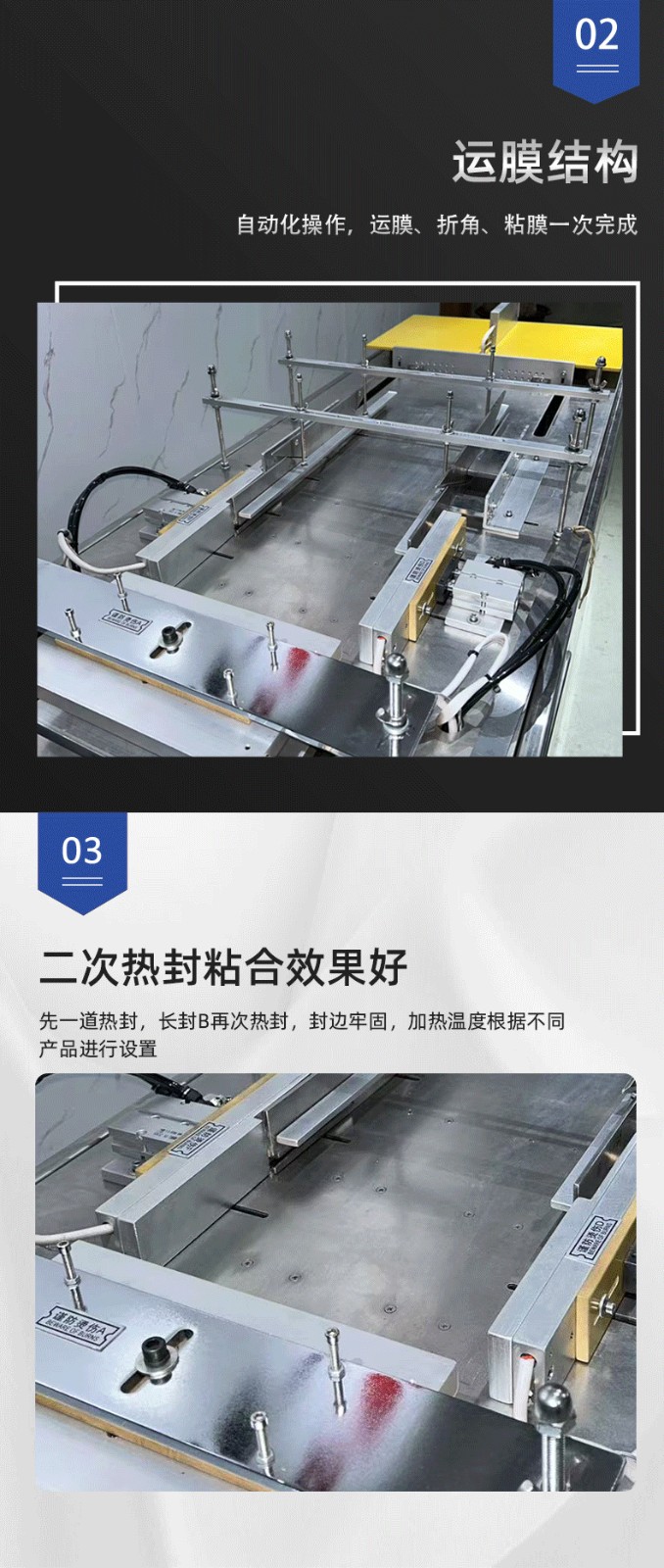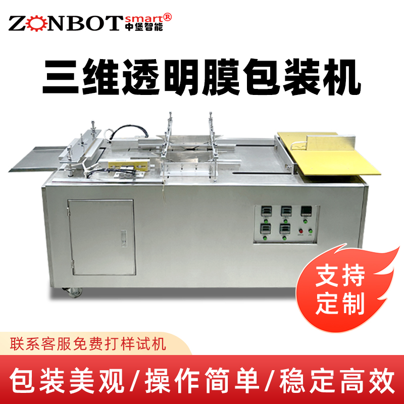 設(shè)備通過(guò) “膜料預(yù)處理→人工上料定位→三維裹膜成型→熱封切邊→折邊定型→成品輸出” 的流程,實(shí)現(xiàn)產(chǎn)品的立體包裝,具體步驟拆解如下: