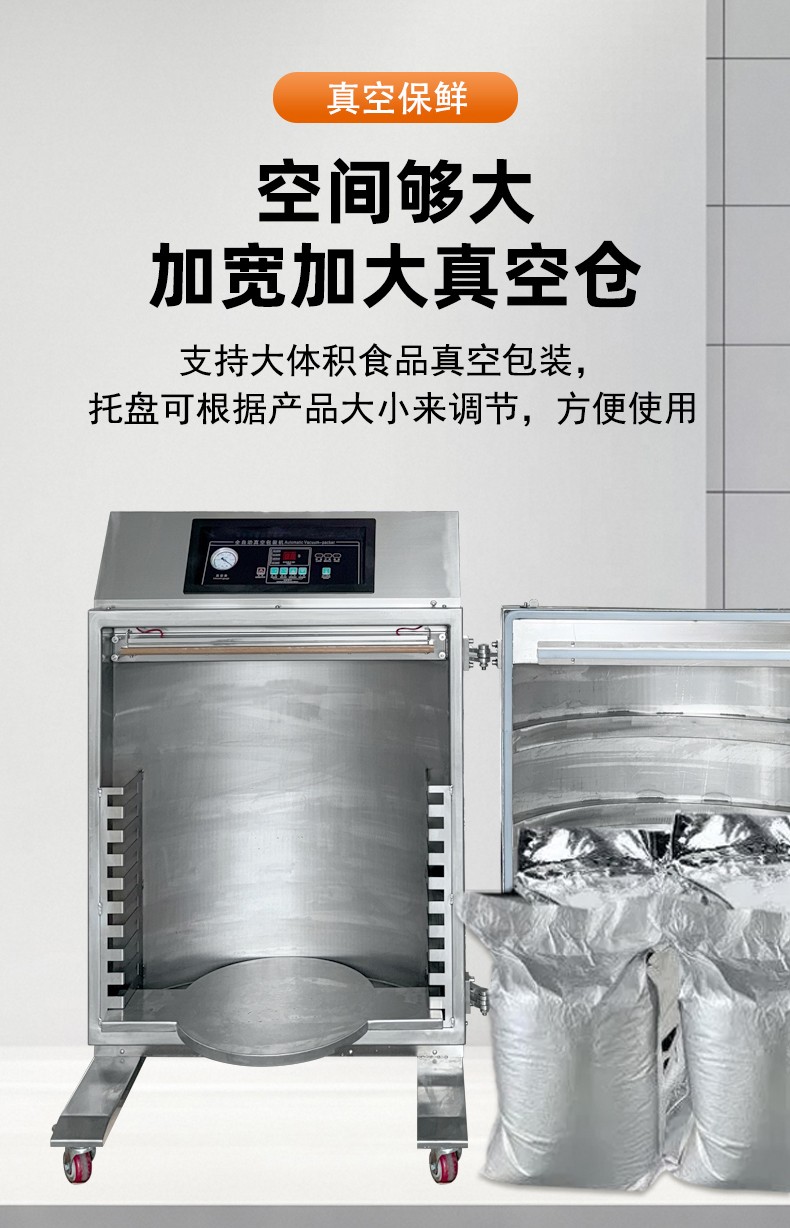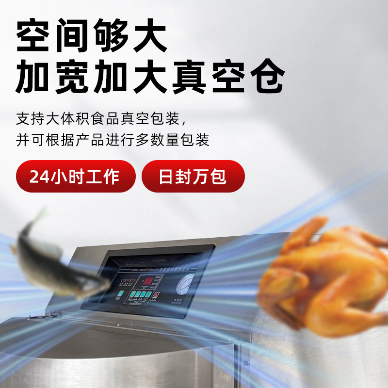 - 大容量真空室:立柜式真空包裝機(jī)的真空室容積較大,如 DZ-650L 型號(hào),可同時(shí)處理大批量食材或大尺寸包裝,能滿足整只火腿、海鮮禮盒、大桶粉末顆粒等特殊形狀物品的封裝需求49。
