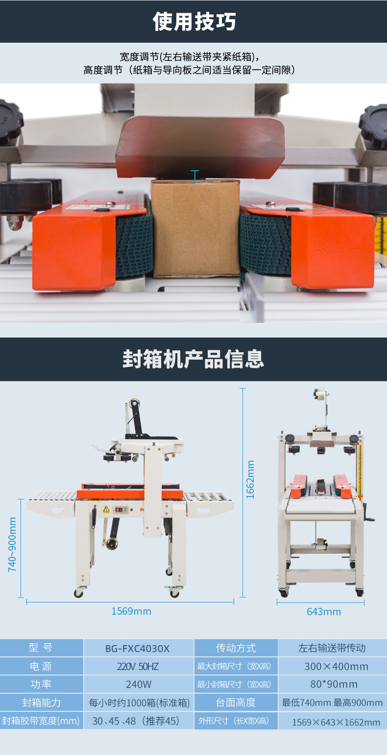 FXC4030X普通款封箱機 紙箱打包器 自動封箱機 飛機盒封箱機