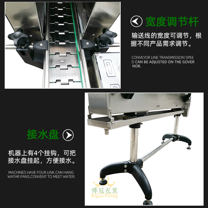 蒸汽式熱收縮機可以根據不同的生產速度來調節設備功率的大小,輸送帶采用無級調速,輸送速度可以任意調節。廣泛應用于大桶或小瓶裝礦泉水、純凈水;汽水和茶飲料等食品飲料行業,以及化妝品、洗發水和五金電子等需要收縮膜包裝的場合使用