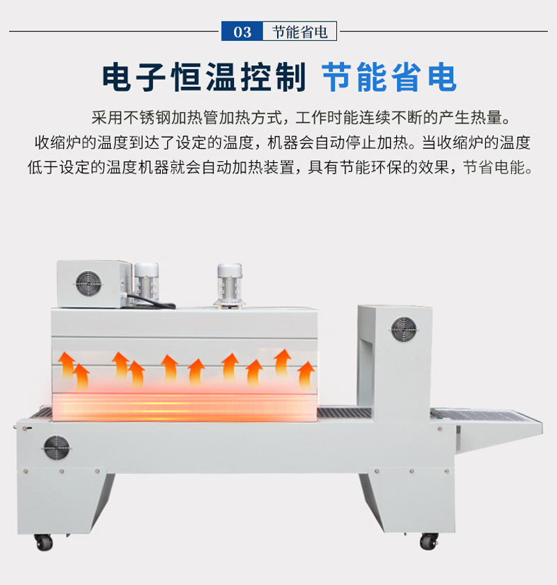 熱收縮機是一種利用高溫熱能將包裝袋瞬間收縮的設備。它可以有效減少包裝袋內的空氣空間,降低食物之間的摩擦,防止潮濕、空氣進入,從而保持食物的新鮮度和口感。此外,熱收縮機還可以提高包裝袋的緊密度,防止破裂和泄漏,使您的產品更加整齊美觀。