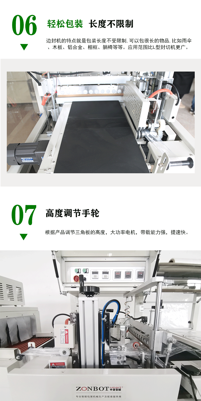 · 配有進口檢測光電,水平、垂直檢測各一組,便于切換選擇,對于薄與小的包裝物,可輕易完成封口包裝作業。