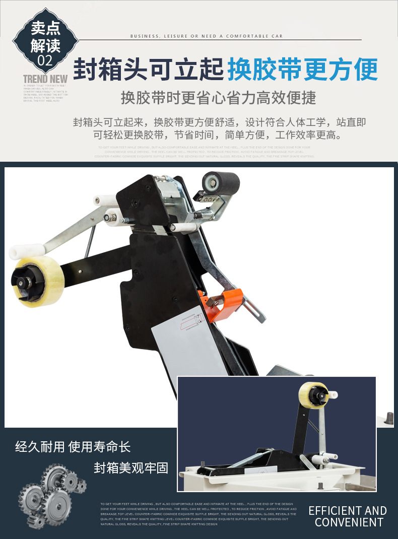 輕巧耐用,操作簡單;側面皮帶驅動,適用較窄紙箱;上下皮帶驅動,適用于較高紙箱;封箱機節省勞動力,減少開箱現象。連線使用可配套折蓋封箱機,單臺使用可選用半自動封箱機。