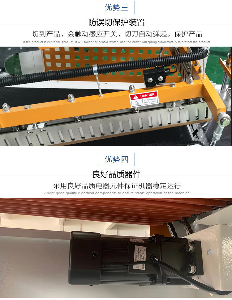 封切機是全自動無人化操作的包裝機,廣泛用于批量生產包裝的流水作業,工作效率高,自動送膜打孔,自動套膜封切,自動卷取廢料;只需手動調節導膜系統以及手動調節進料輸送平臺,適用不同寬度及高度的產品。可與自動化包裝流水線配套使用