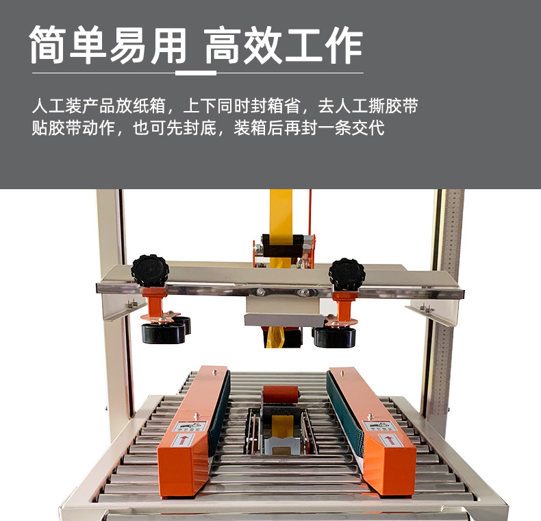封箱機,也稱為Case sealer machine,主要用于紙箱的封箱包裝。它們不僅適用于單機作業,也可以與流水線配套使用,是包裝流水線作業中不可或缺的設備。封箱機的功能包括自動折疊、粘合和封口紙箱,通過先進的感應和控制技術,能夠自動檢測和調整紙箱尺寸,按照設計要求進行折疊和封口操作,大大提高了包裝的效率和一致性,減少了人工操作的錯誤和勞動強度。