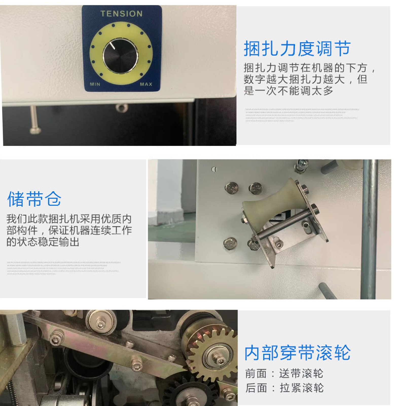 打包機的功能是使用捆扎帶纏繞產品或包裝件,?然后收緊并將兩端通過熱效應熔融或使用包扣等材料連接,?以保證包件在運輸、?貯存中不因捆扎不牢而散落,?同時應捆扎整齊美觀。?